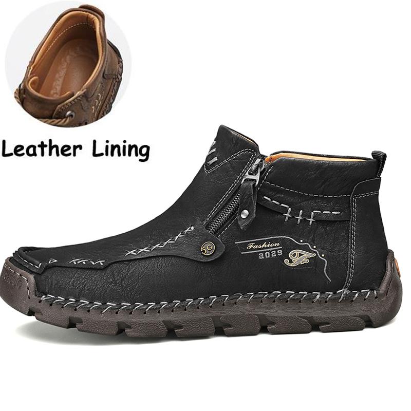 These men's casual leather shoes are the perfect combination of style and function. The classic design features a mid-cut ankle boot style with a look inspired by moccasins. The stylish and simple silhouette makes these shoes easy to pair with a variety of outfits, whether it's jeans, chinos or suits. Whether you're going for a casual day or a more formal occasion, these shoes will add a touch of sophistication to your look.